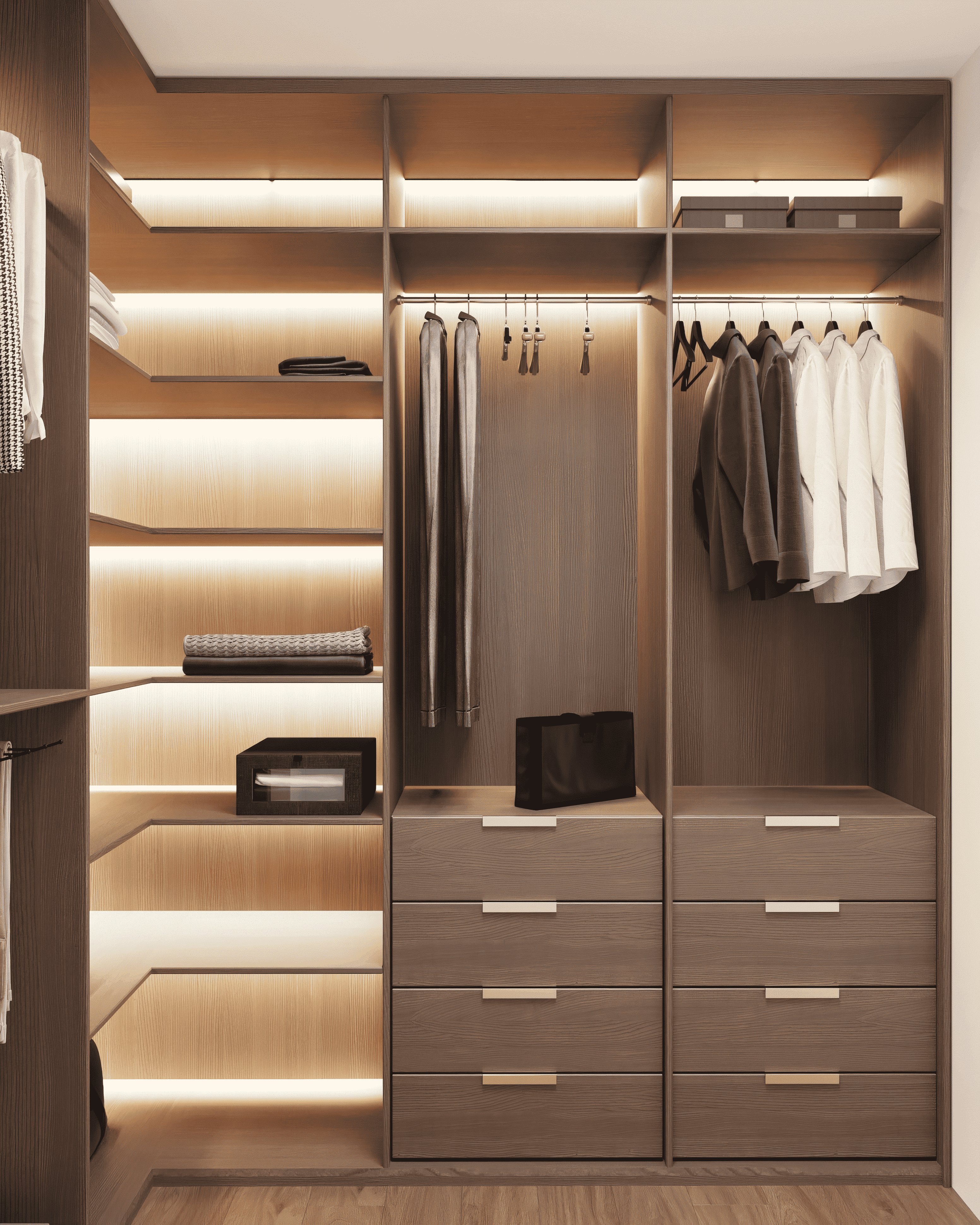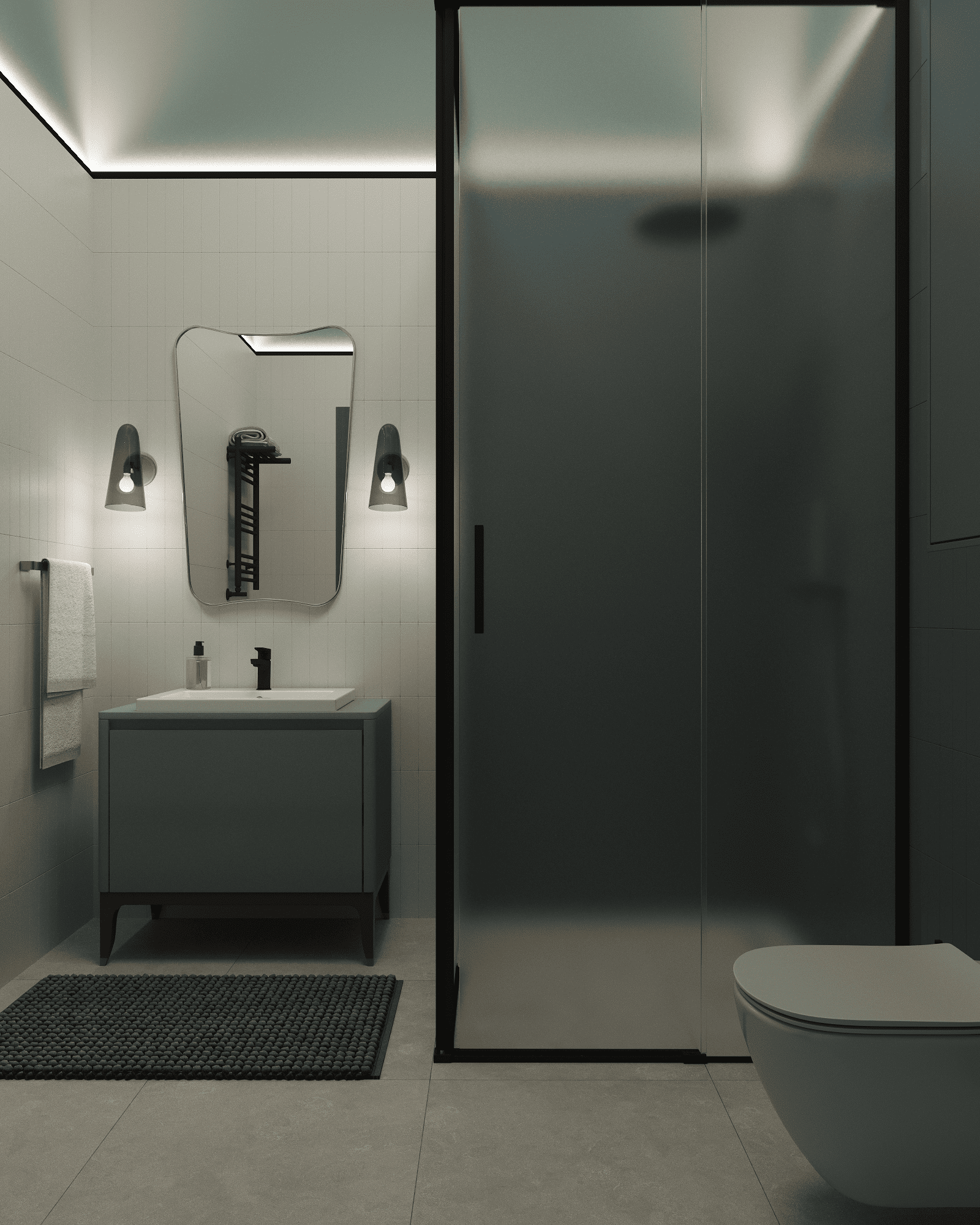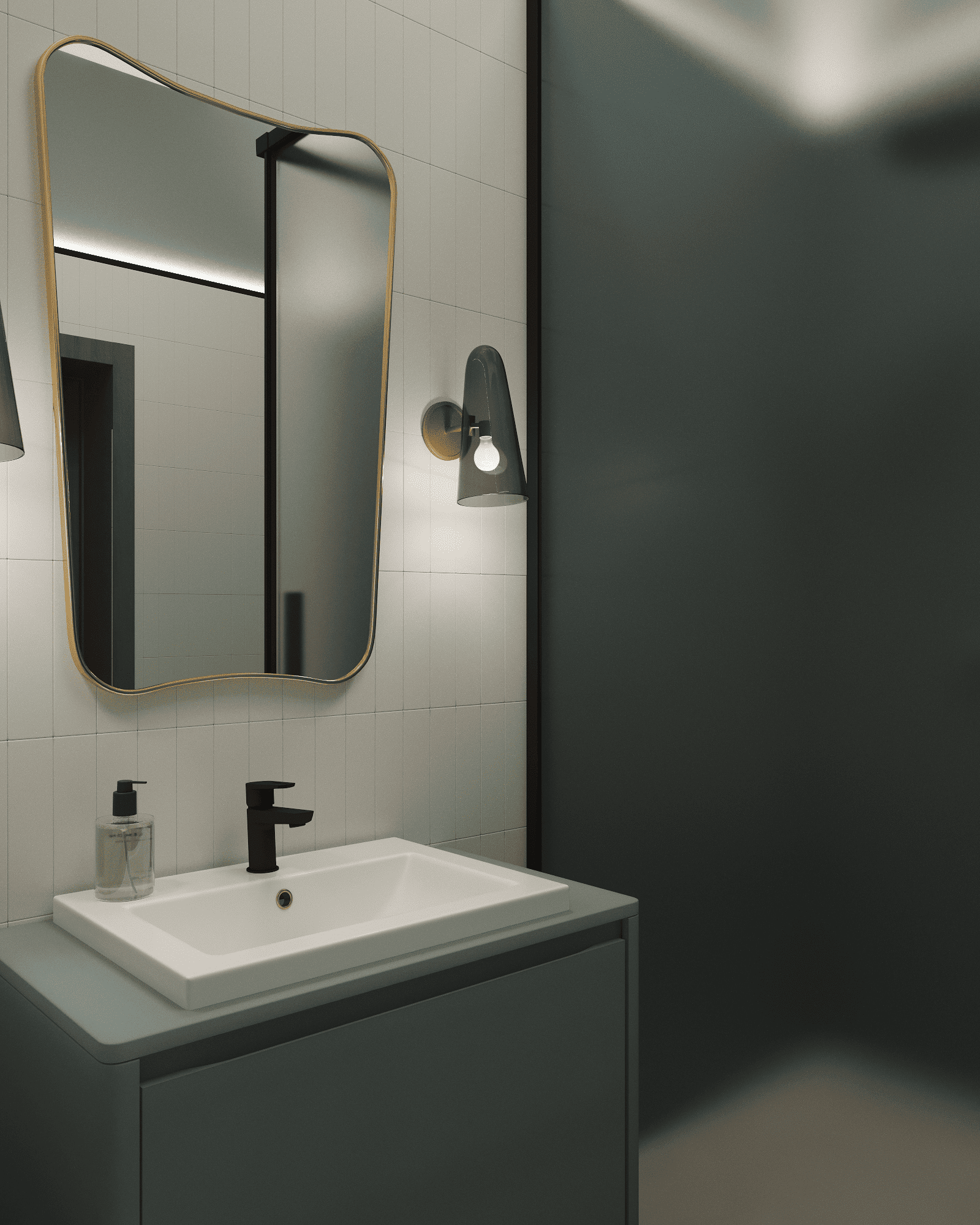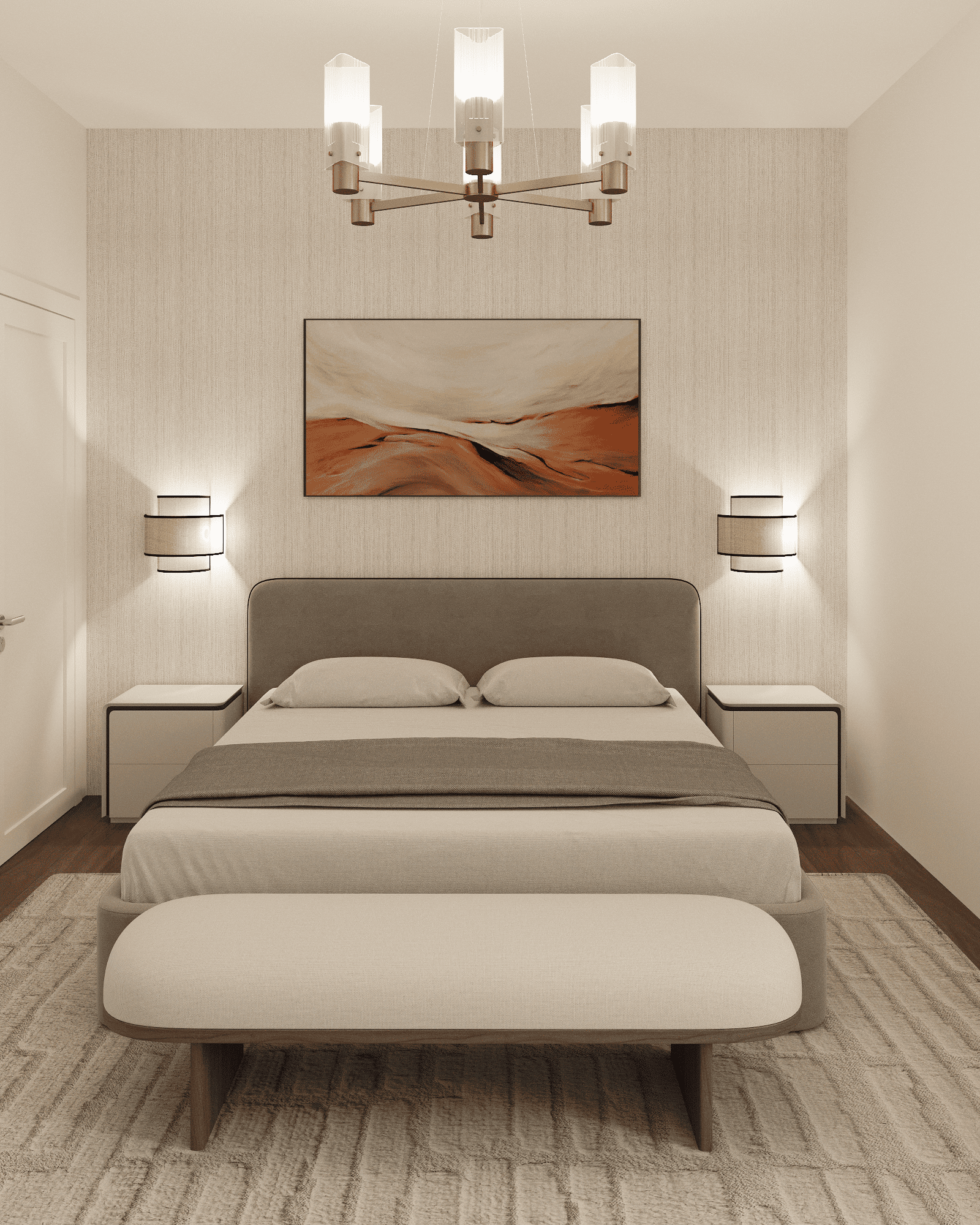 Акцентный декор вносит разнообразие и характер в пространство. Стены украшают сет миниатюрных картин и архитектурный постер, которые добавляют художественный элемент и подчеркивают стиль комнаты. Высокая лампа с мягким светом, создает уютную атмосферу и служит не только источником света, но и стильным акцентом.