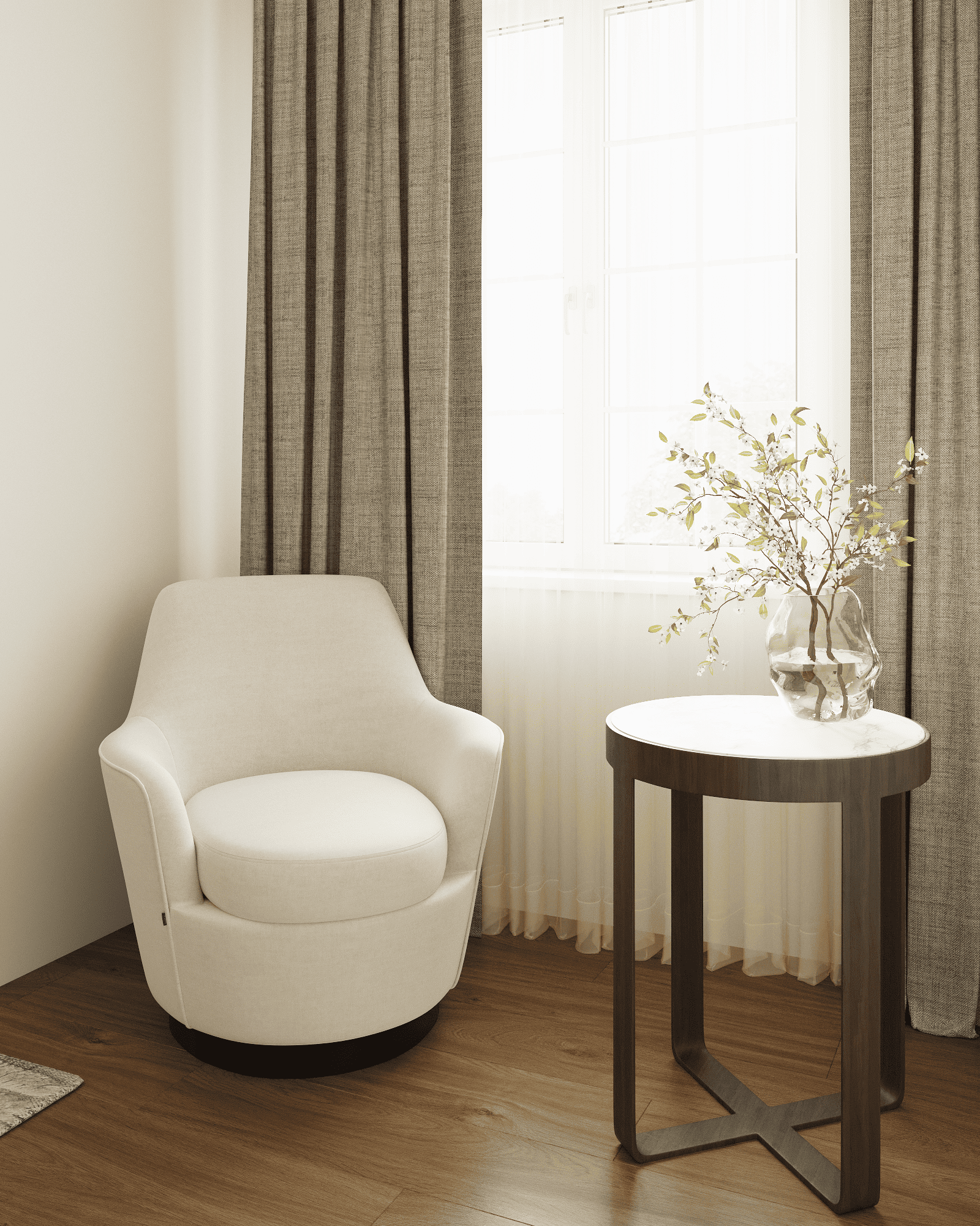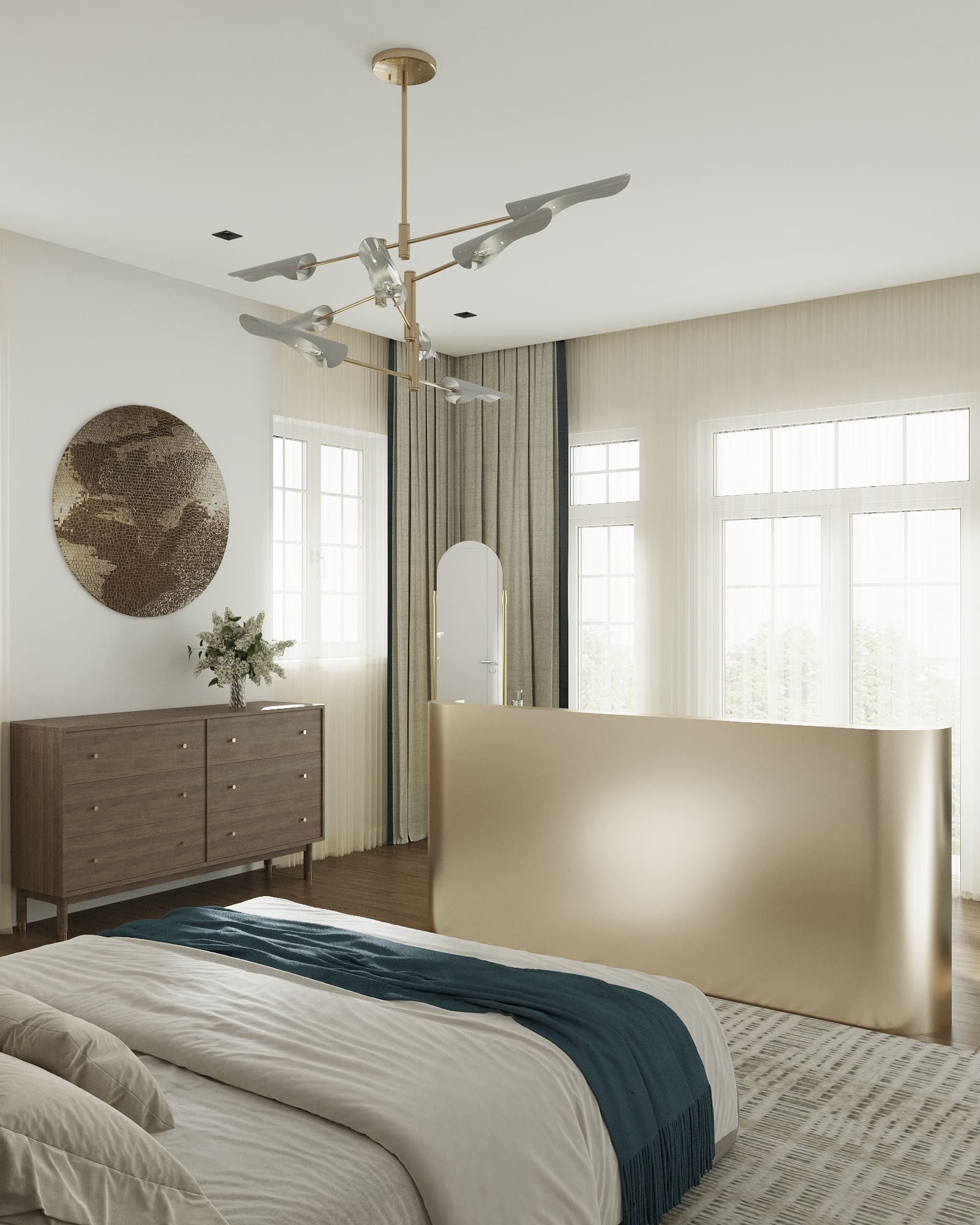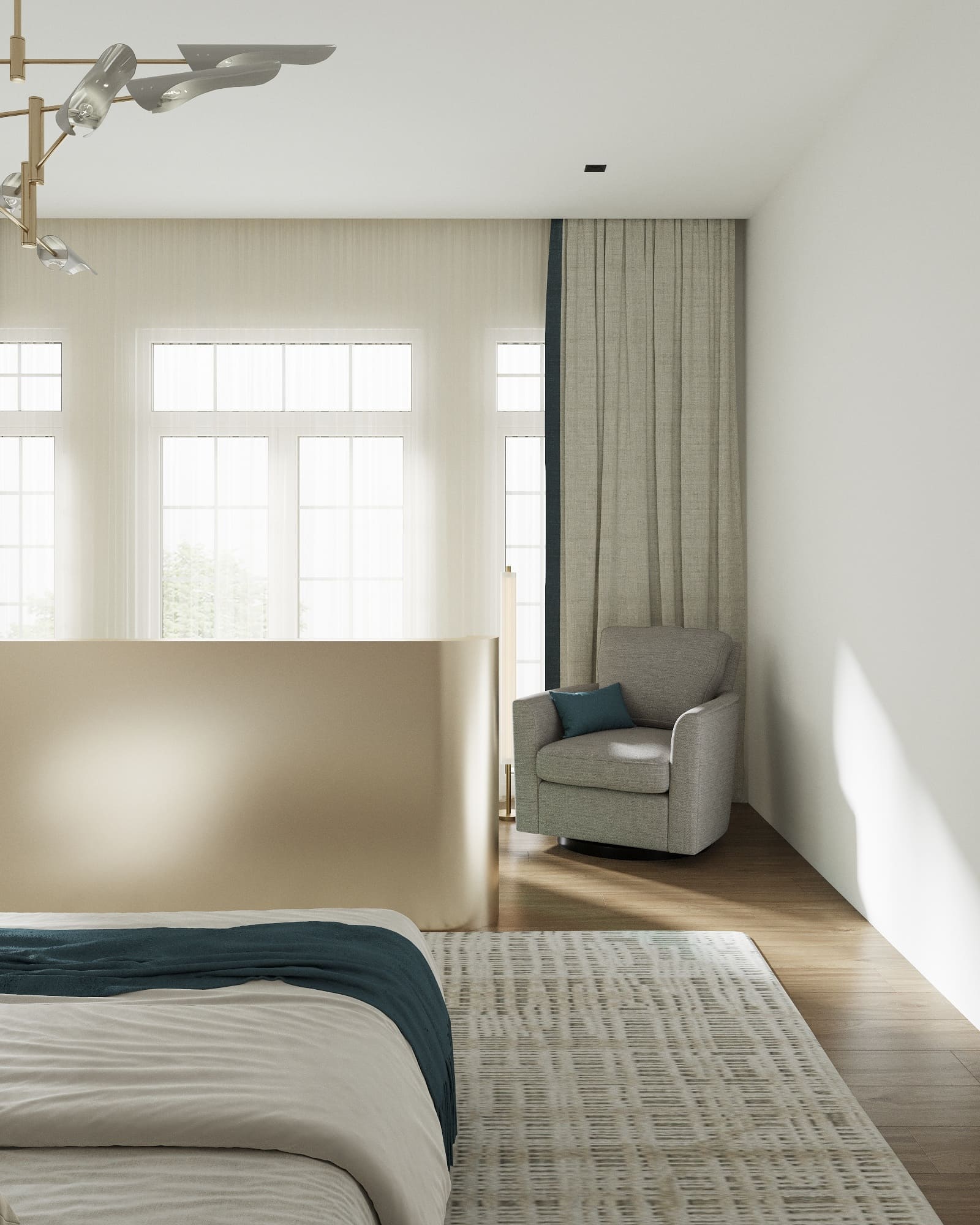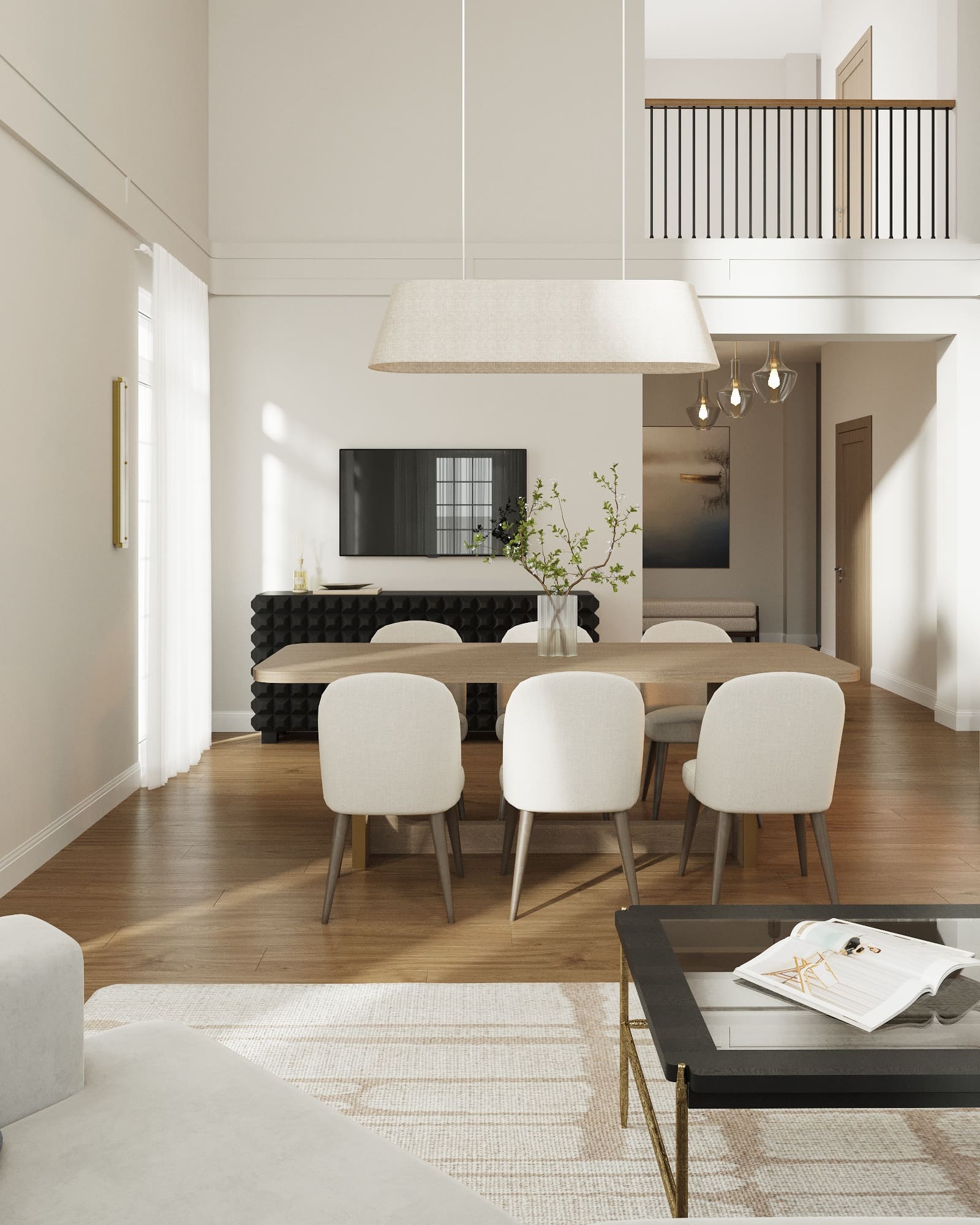 Этот дом сочетает в себе уют английской классики, легкую французскую романтику и современную эстетику светлых интерьеров. Основные черты — натуральные материалы, теплые текстуры, мягкие формы, которые так важны для создания атмосферы настоящего домашнего очага.